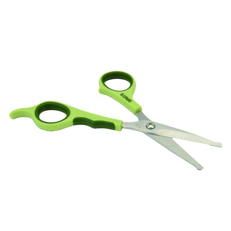 The Safari Dog Safety Scissors are perfect for trimming hair around the dog's eyes, face, ears and paws. Quality stainless steel blades ensure a long lasting, sharp cutting edge. Rounded ends on the blades provide the safety needed when trimming delicate a