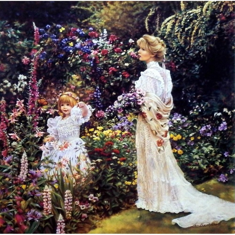 Mother and Daughter in Flower GardenOpen EditionImage Size 16" x 16"