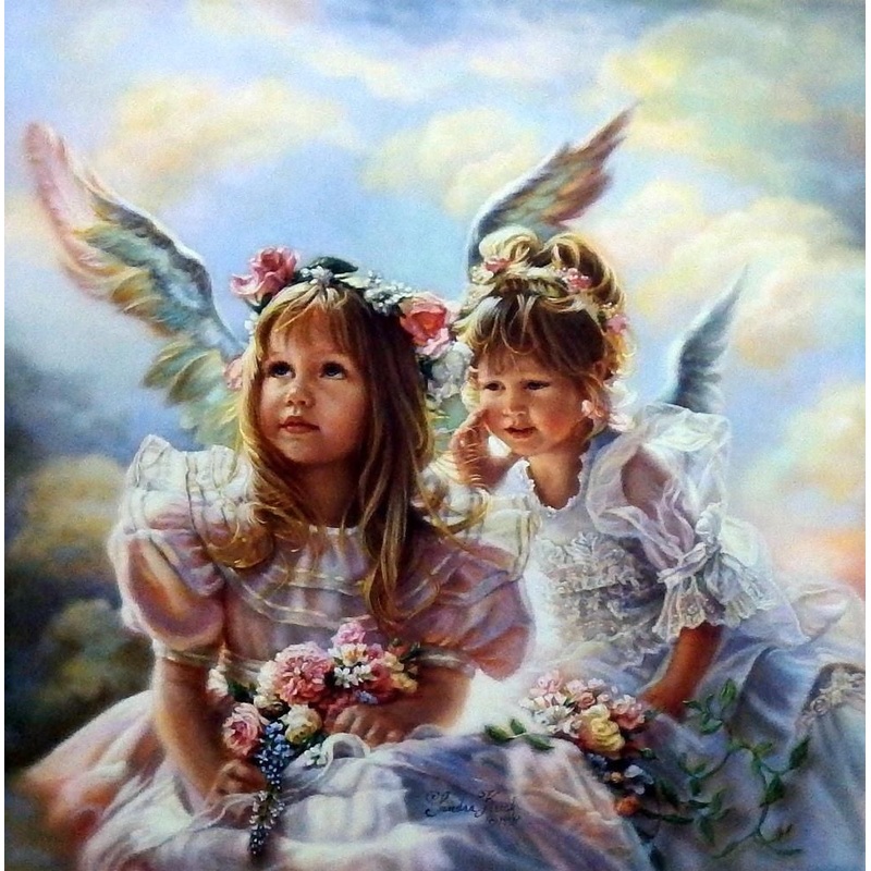 Little Girl Angels with FlowersImage Size 14" x 14"