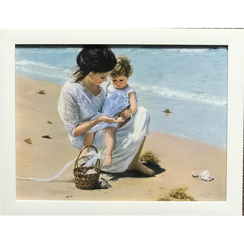 A Mother and Daughter picking up Seashells and enjoying each others Company.Framed Size 18"W x 14"HThis print is framed and then Hand Textured to give it the look and feel of a Canvas