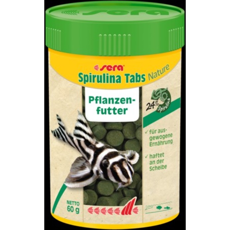 Attaching tablets with 24% spirulina for healthy digestion and livelinesssera Spirulina Tabs Nature is the veggie food without dyes and preservatives consisting of attaching tablets. It is excellently suitable for mainly herbivorous fish and invertebrates