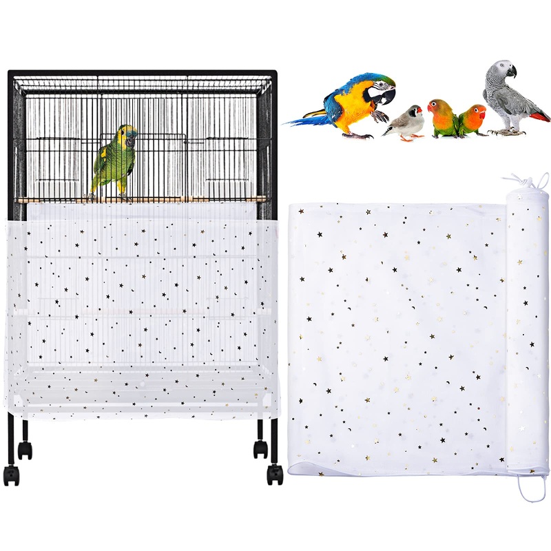 Features: The bird cage net cover can weaken the light, as well as offer nice air permeability, creating a cozy and comfortable place for birds to play and rest. The birdcage seed catcher is designed with elastic band on the top and bottom, which can hold