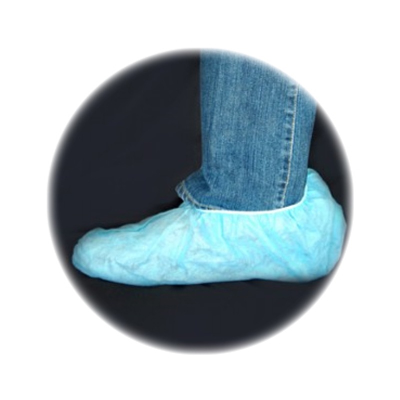 300 pack case of blue polyethylene, water resistant, shoe covers.