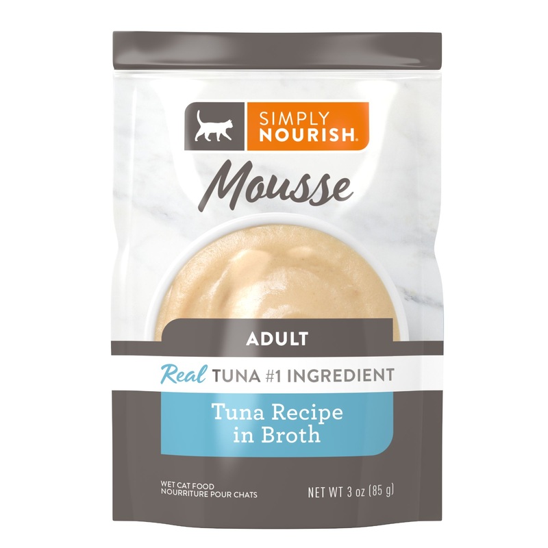 DESCRIPTION Simply Nourish Tuna Recipe in Broth Mousse Adult Cat Food is the perfect mealtime choice for your kitty. This delicious mousse features the great taste of tuna in each and every bite for a culinary experience your cat will love. Only at PetSmar