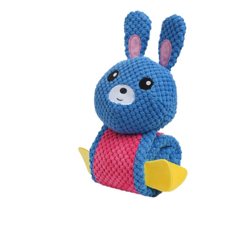 Interactive Snuffle Toy. Made of cotton and has the feel of a rolled up towel, which dogs love to chew. Unroll the body and hide treats in the 3 hide-away-holes and watch the fun begin! The body also has squeakers for more fun and entertainment even after