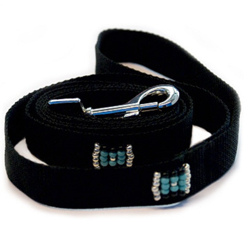 Southwestern Beaded Black Dog LeashSmall seed beads create a soft delicate southwest look on black webbing. Quality hardware is used in the handcrafting of our leashes. Dont forget the matching collar! Our collars and leashes feature: Heavy duty trigger sn