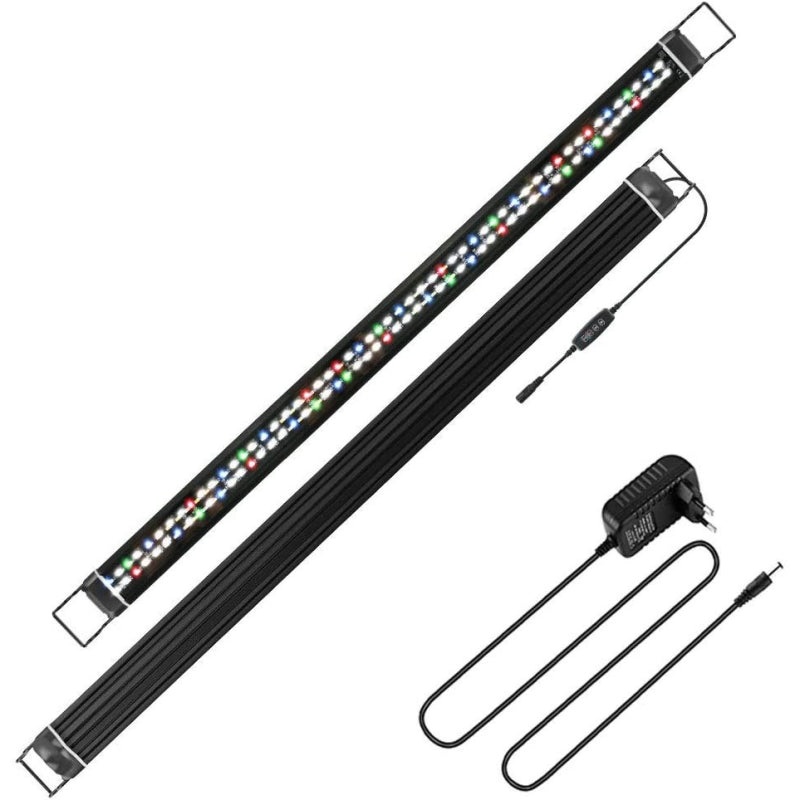 Freshwater RGB LED (48w) for aquariums 85-110cm – Includes 4 mode multi-switch to control LED’s, W and B buttons to control LED intensity in levels from 1 to 10. Icludes 6/10/12 hr timer function and Power-Off memory. Power supply input: 100-249V AC/50-60Hz. Output: 24v DC/2.5A.