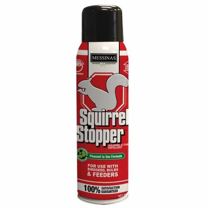 Messinas Squirrel Stopper Pressurized Spray can be used to discourage most squirrels and chipmunks from nesting, foraging, and entering attics and other areas. To prevent further home and garden harm, apply Messinas Squirrel Stopper to key areas.Our humane