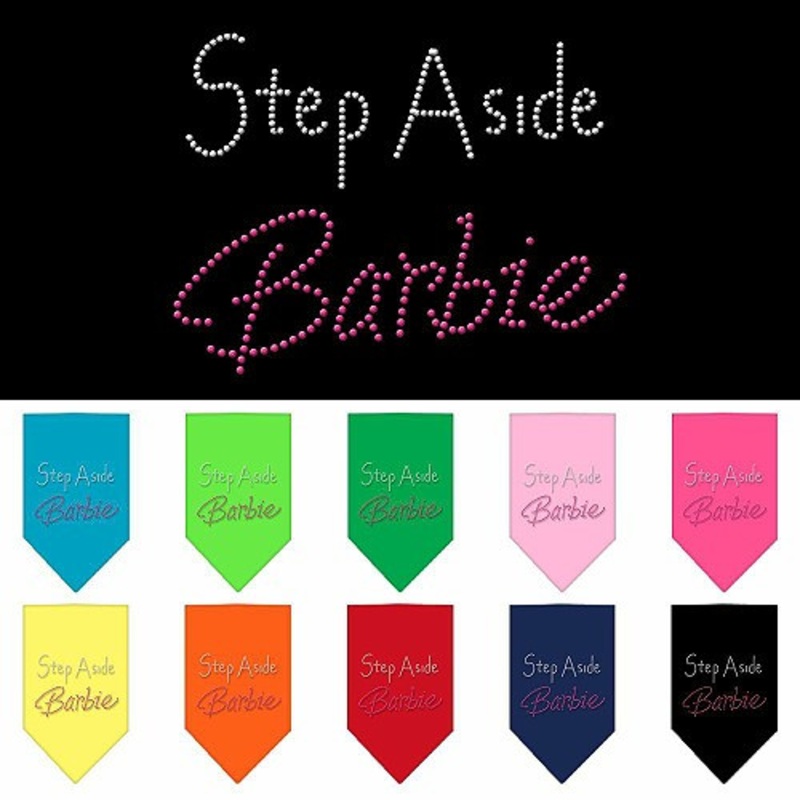 Step Aside Barbie Rhinestone Dog BandanaScreen Printed pet dog bandannas, available in Small or Large, great for adding to an outfit, or wearing alone. Perfect for pictures. You can add rhinestones, lace, color in with fabric coloring markers to personaliz