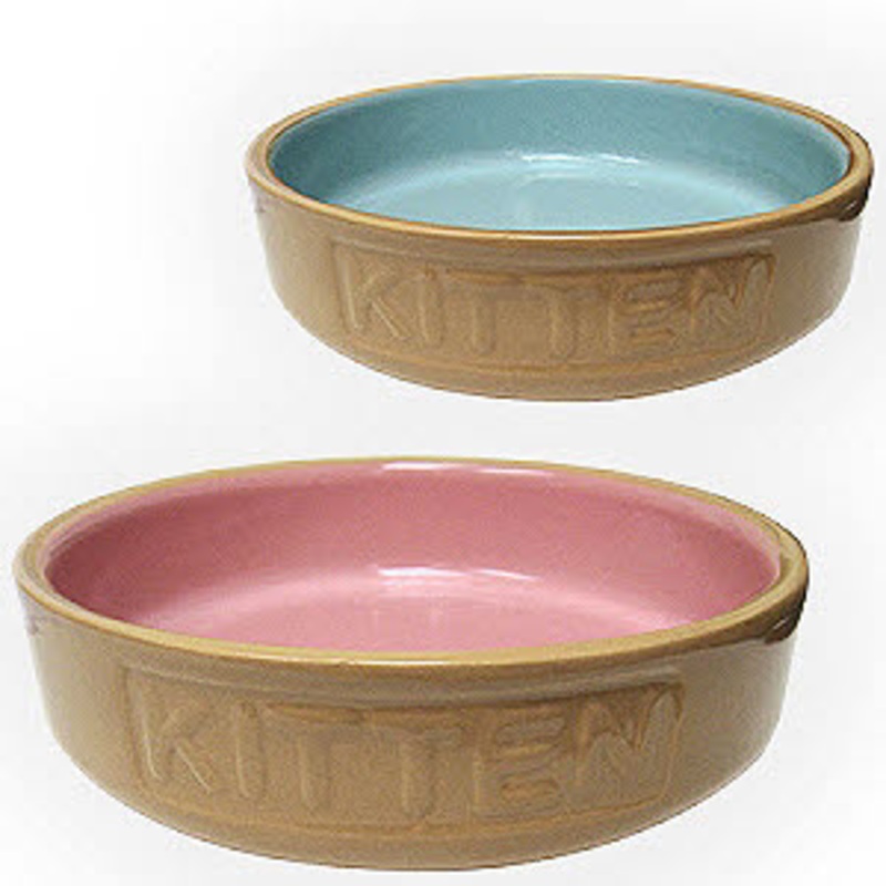Mason Cash Cane Stoneware Kitty Cat Saucers / Bowls, 5 x 1.5"Adding a splash of color to the well established cane range, the Cane and Colored Mason Cash stoneware petware has all of the original features of the cane collection, but includes a deep blue in