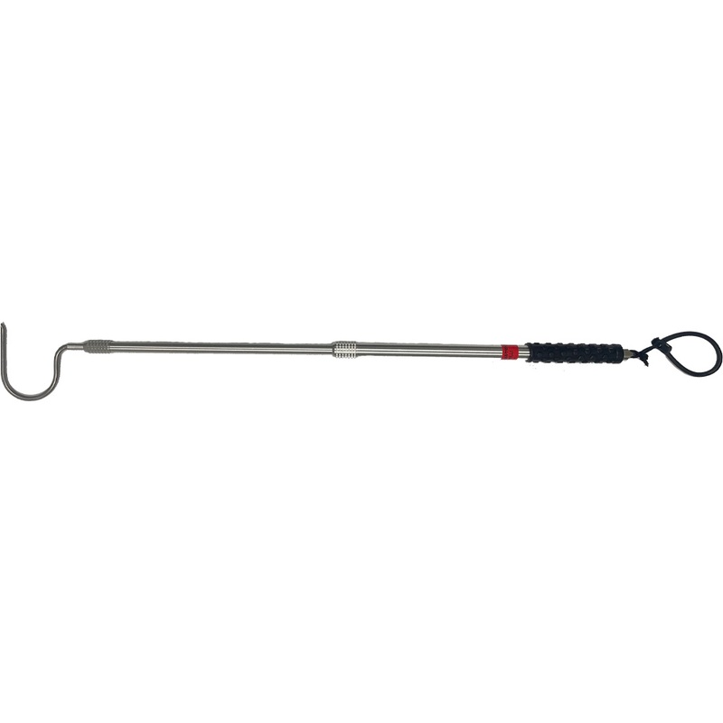 Stony’s has spent 6 years working on this new style Telescoping Hook. We set the bar higher for this type of telescoping snake hooks.The 3 piece tubing is a thick wall Anodized Aluminum tubing.The hook part is Titanium metal 1/4 thick.Has a hard rubber Knobby knots Grip to stop slippage when hands are wet.