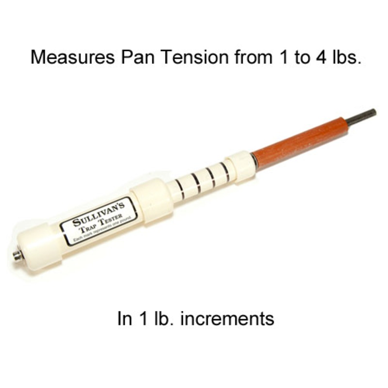 Sullivan's Trap Tester is designed to easily and accurately measure the pan tension on foothold traps. The tester is graduated from 1 pound to 4 pounds, in 1 pound increments. You set the foothold trap you'd like to test and press the spring-loaded tester