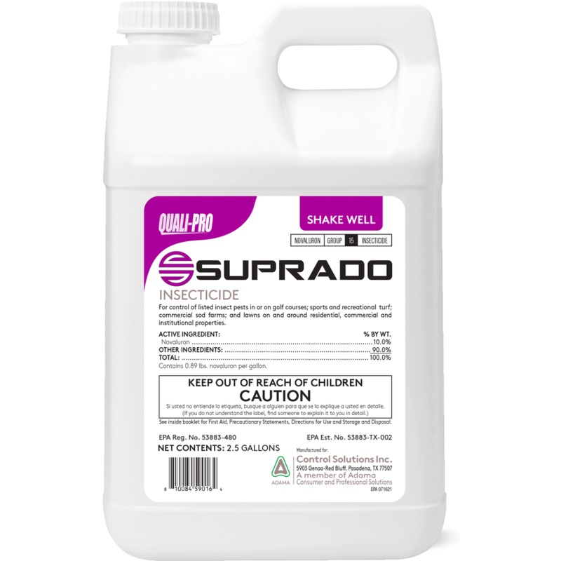 Introducing Quali-Pros Suprado Insecticide, powered by Novaluron. A brand-new class of chemistry with a unique mode of action to fight against annual bluegrass weevils.More Information Package Size: 2.5 gal jug (for a case order 2) Active Ingredients: Nova