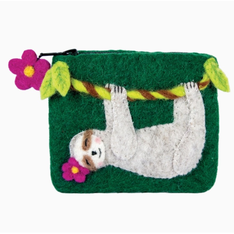 Hand-felted with 100% natural wool by a Fair-Trade production group in Nepal. Made with a high quality YKK lead free zipper. Convenient size and lined with black cotton. Features a charming felt zipper pull and delightful handcrafted details. An original Wild Woolies design by dZi Handmade.