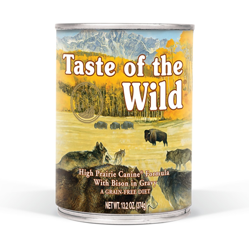 Taste of the Wild High Prairie canned dog food is a grain free formula with high quality buffalo, beef and lamb with sweet potatoes and peas for healthy, digestible energy for your active dog. With roasted buffalo as the first ingredient, this diet mimics
