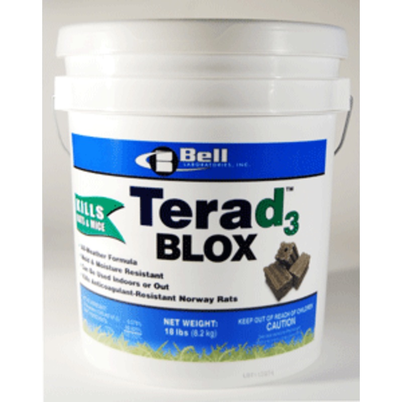 Terad3BLOX, Bell's newest rodenticide, expertly combines the most recent advancements in bait formulation to yield a highly weatherable BLOX with the low hazard benefits of the active ingredient, Vitamin D3. After years of researching the most effective fo