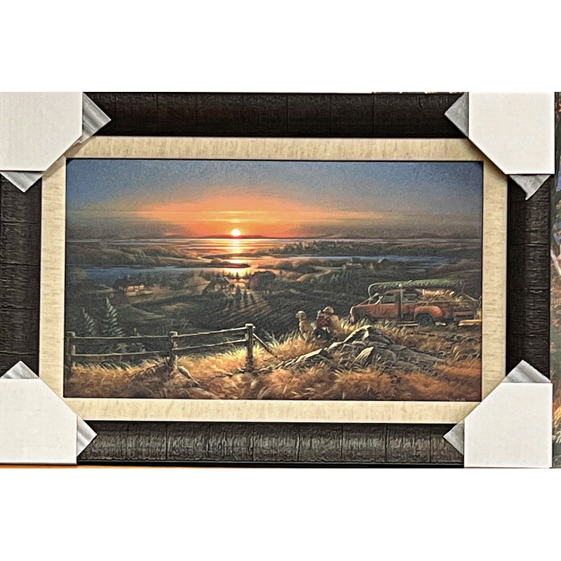This Hunter is looking over the Valley for a good place for the Next days HuntPrint is framed and Hand Textured and finished with a Cloth liner to give it the look and feel of a CanvasFramed Size 23." x 15.5"