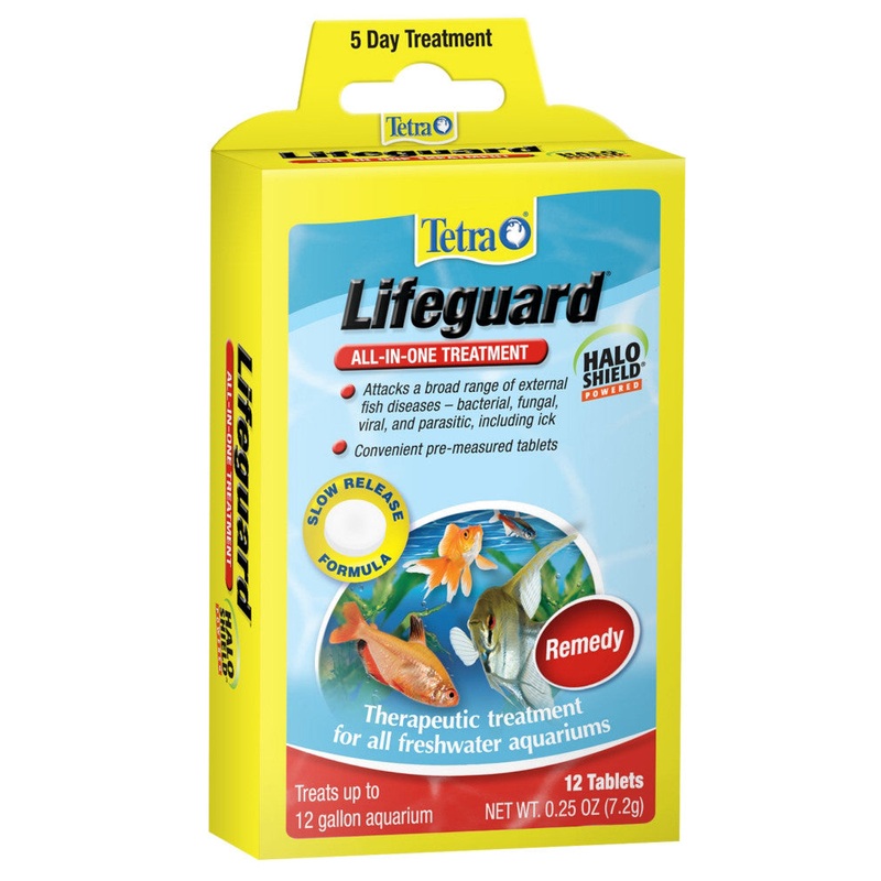 Lifeguard attacks a broad range of external fish diseases in a convenient pre-measured tablet. No guesswork needed! Extremely effective against fungus and ick. Add one tablet per day to each five gallons. Use for five consecutive days.