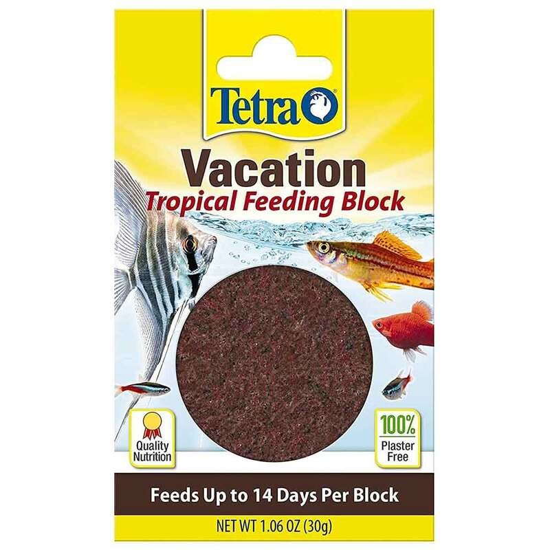 Tetra Vacation 14 Day FeederExisting plaster blocks are old school technology that can wreak havoc on your water quality! Tetra brands innovative gel feeder block contains no plaster and feeds up to 14 days with the Tetra Vacation Tropical Feeding Block. B