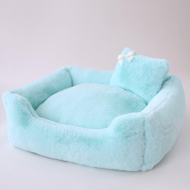 The Divine Dog Bed:Ice BlueHello Doggie is excited to debut our new luxurious Divine Bed. Made with only the softest, most luxurious high-end fabric, any pup would dive right into this bed to enjoy a long slumber. The overstuffed pillow allows your pampere
