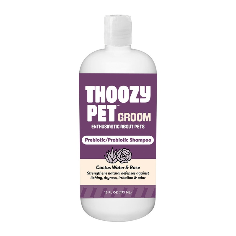 ThoozyPet Prebiotic/Probiotic Shampoo in Cactus Water & Rose (16oz) helps strengthen your pets natural defenses against itching, dryness, irritation, and odor. Safe for both dogs and cats when used as directed, this cruelty-free, dye-free, and SLS-free for
