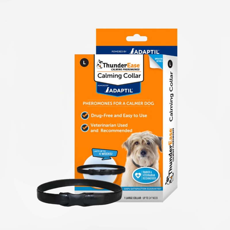 ThunderEase for Dogs mimics the calming pheromone that a mother dog releases while nursing her puppies, which helps your dog to feel calmer, more secure, and more comfortable! Your dog's body heat activates the calming pheromones in the ThunderEase Calming