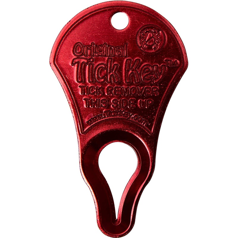 Place the key over the tick in the slot. Pull key away from the tick sliding flush along the skin. The Tick is removed easily, head and all! This design has been perfected and tested for over a decade and is responsible for the removal of thousands and thousands of ticks of all sizes (including deer ticks and dog ticks). Original TickKey is fabricated from high-strength anodized aluminum this is not a weak piece of plastic. Original TickKey is flat and is easily stored in a first aid kit, wallet, pocket, on a key chain, collar, backpack, saddle, or leash.