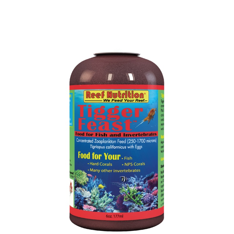 Tigger-Feastis a highly concentrated refrigerated form of the same Copepods (Tigriopus californicus) found inTigger-Pods. Just like live Tigger-Pods, Tigger-Feast is a nutritious feed perfect for hard corals, larval fish, and other reef carnivores that fee