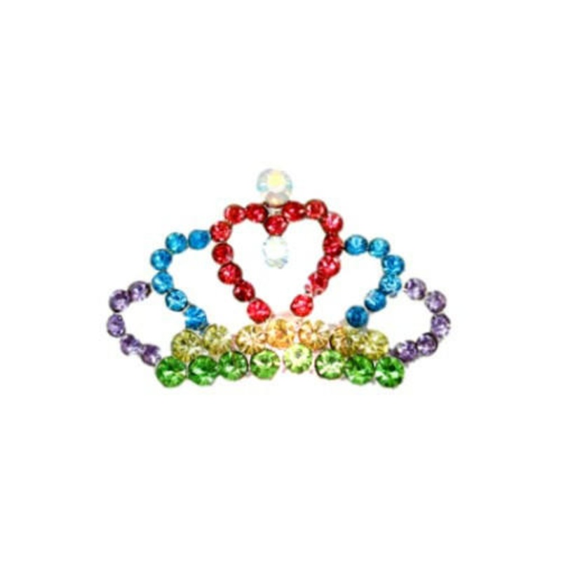 Tiny Tiara, Multi Rhinestone Dog Hair BarrettesTiny Tiara, Brilliant pav set stones on the perfect size tiara for the perfect pooch! Imported and then crafted in the USA. Slightly heavier than a regular bow but not too heavy for comfort. 1.5" wide x 1" tal