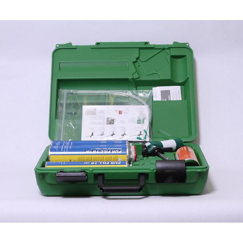 Starter Kit includes:3 cans of 1GYELLOW Foam, 1 Pageris Gun, 1 can ofgun cleaner, 2 foot Plastic tubing,5plastic needles, 1 plastic adaptor,anda product catalog- packed in a hard plastic case.