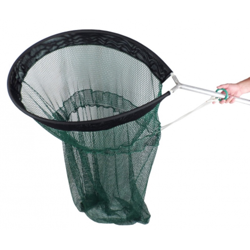 It features a 5/8″ nylon hoop, woven ” nylon tangle free mesh netting, two layered 1/8″ woven nylon hem, tie-off cord, and heavy duty aluminum handle with long neoprene grip.