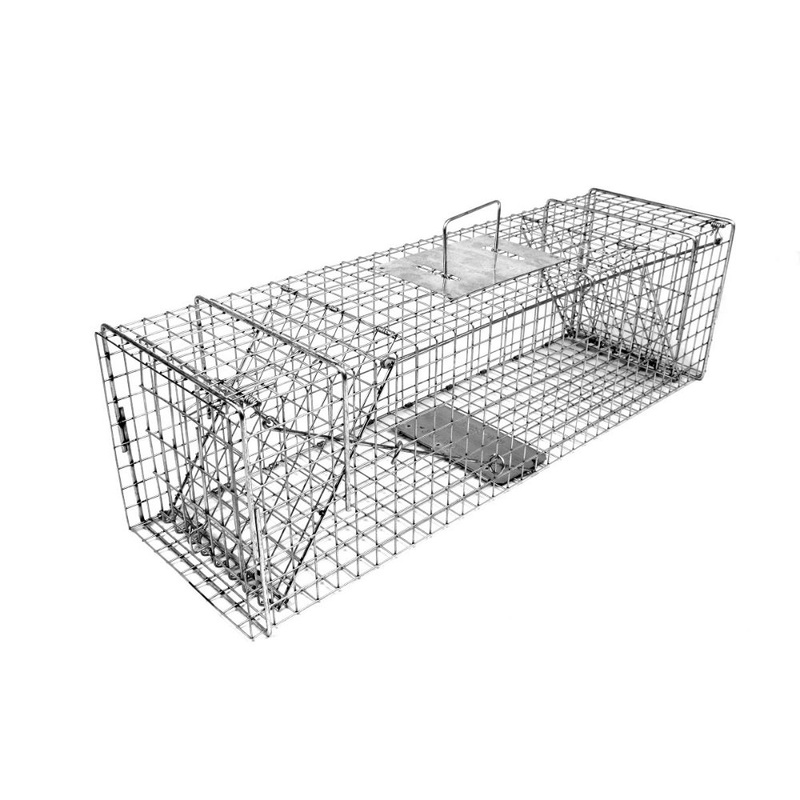 Tomahawk Model 107 is an Original Series live trap with two trap doors for opossum, cats, rabbits, and similar size animals. Double door traps can be used as bait-less runway traps or set only one trap door to use as a single door baited trap. Trap doors a