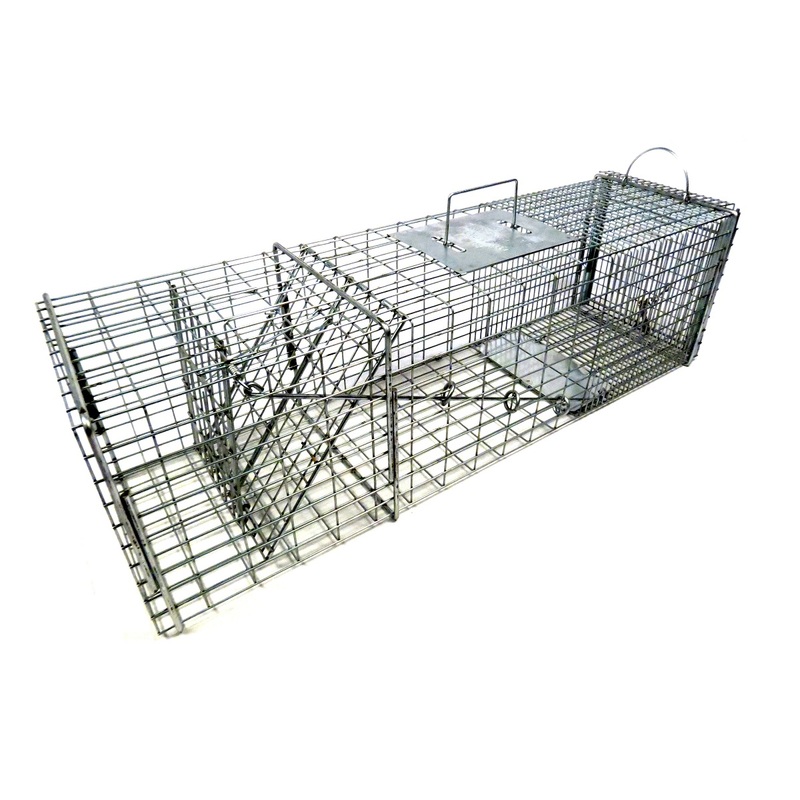 Brand:Tomahawk Live TrapsWeight:12 lbs. (5.44 kg.)Wire Gauge:12 GaugeMesh Size:1″ x 2″ with 1/2″ x 1″ Bait SaverTarget Pests:Raccoon,Woodchuck,Cat