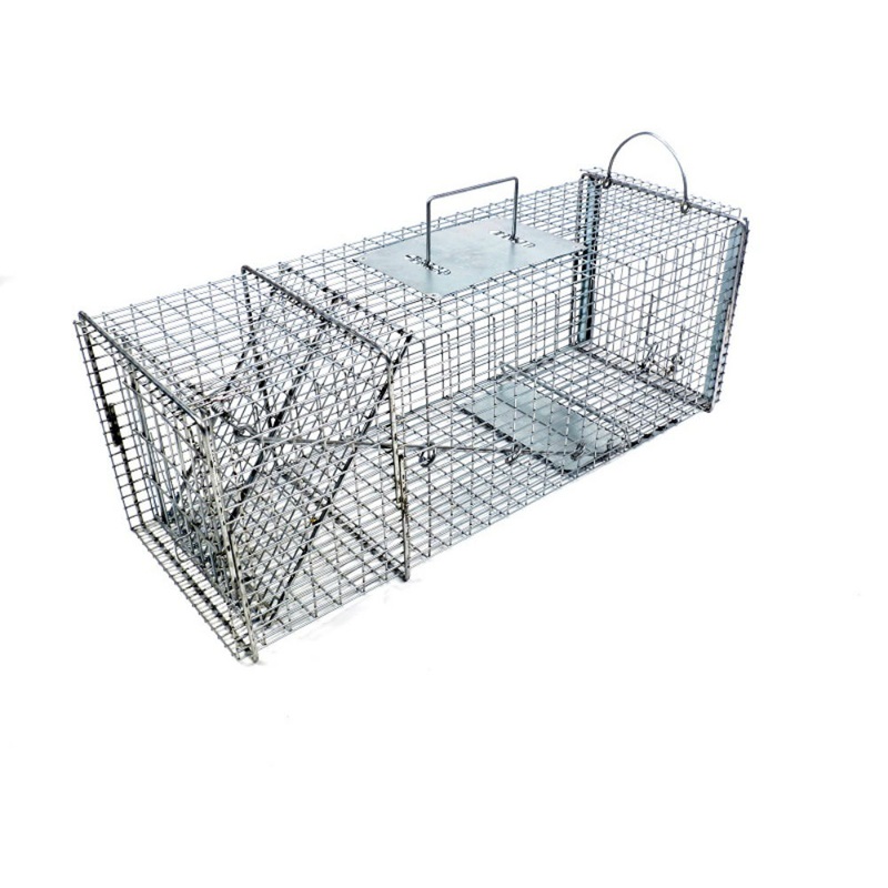 Tomahawk Model 606SS is a professional live trap with a rear acces door for opossum, cats, rabbits and similar size animals. This trap measures 26L x 9W x 9H. It features a very strong wire frame with tighter mesh patterns and extra reinforcing steel rods