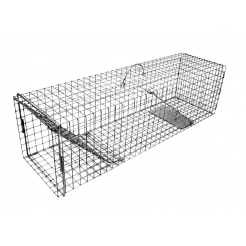 This trap measures 32L x 9W x 9H and is constructed with 1×1 wire mesh.