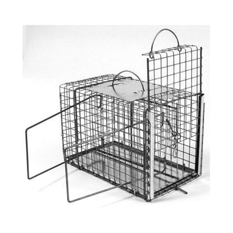 This cage also has a removable sliding door that matches up nicely to the rear sliding door of our 15W x 20H” traps for easy transfer of animals.
