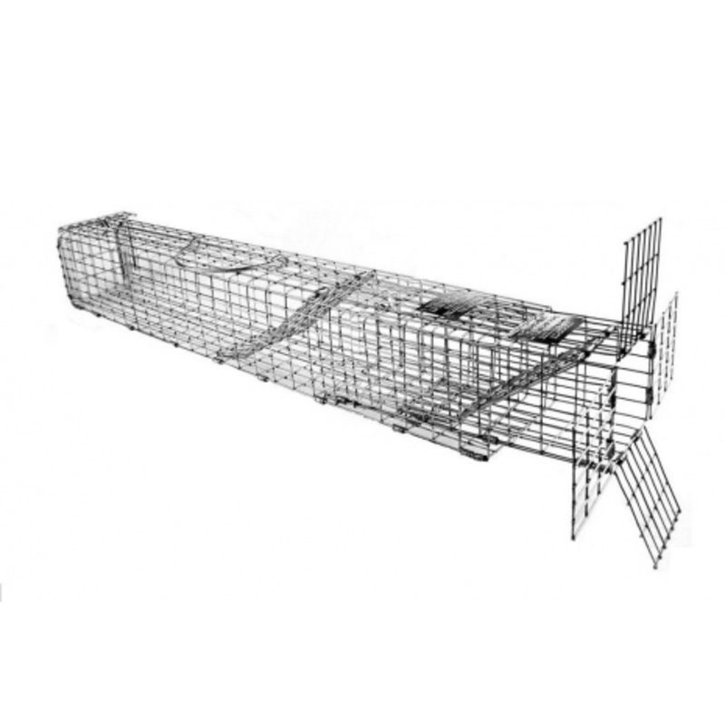 SP40 consists of one E40 excluder and two SPT40 repeating traps. The repeating traps have one trap door and and an easy release rear door. Attach E40 over the animals den opening with the mounting wings. Slide one of the SPT40 repeating traps over the E40 excluder and hook into place. As critters exit, the excluder will direct them into the repeating trap. To remove captured animals from the property, simply unhook the SPT40 repeating trap and replace it with the other included with this kit.