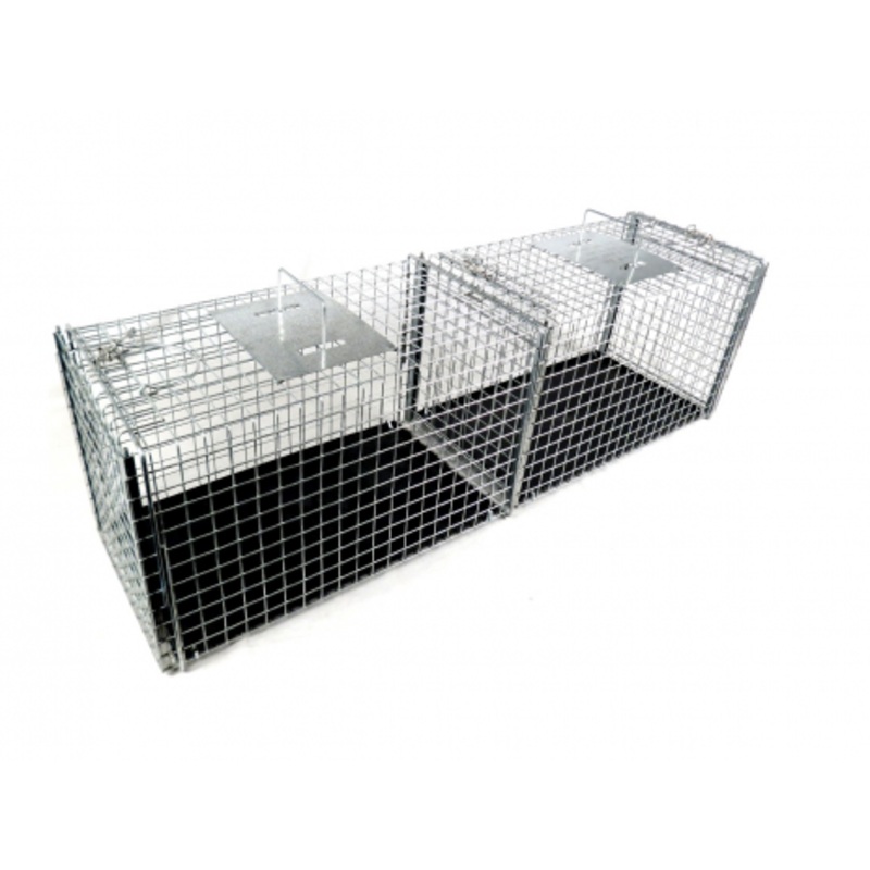 This cage can also be used with our C306 and C307 connector pieces to attach multiple cages and traps together for even larger holding areas. Each chamber also has a bottom tray that can be removed for easy cleaning.