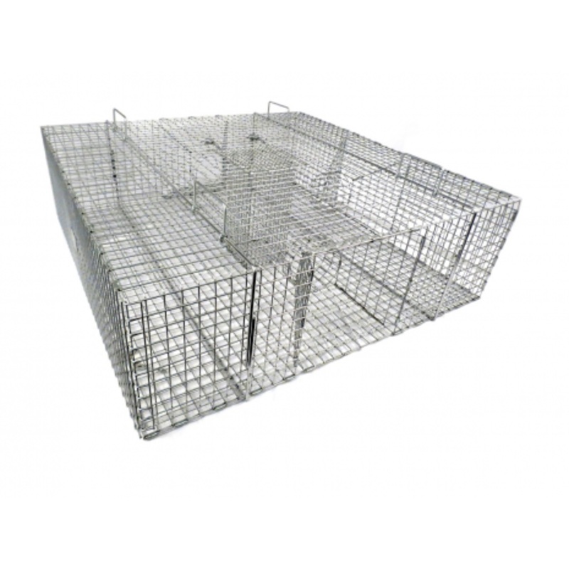 This heavy duty trap measures 36″W x 36″L x 11″H and is constructed from 1 x 1″ 12 gauge galvanized wire mesh.
