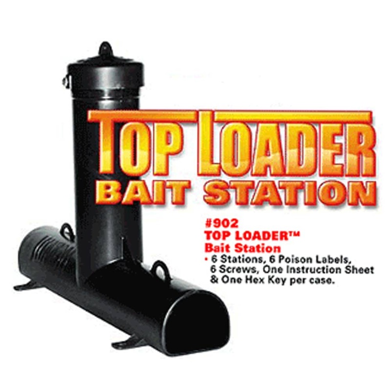 This is the Top Loader Bait Station by J.T. Eaton. Very versatile, weather-proof and can be placed almost anywhere. (Case of 6)Comes with bait holder rods, screws and plastic disk nuts installed. Includes six (6) hex keys and6 poison labels per case. Good