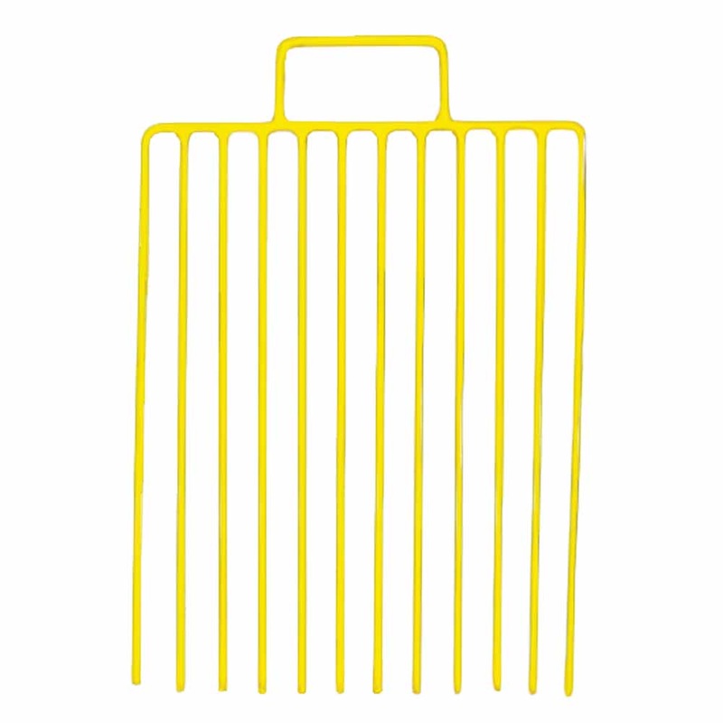 Trap Divider (Fork), fits 11″ & 12″ wide cage traps, measures 11″W x 14.25″H, and is painted yellow for rust-resistance. This trap divider is constructed of 1/4″ steel rod with 1″ spacing between the tines of the fork.
