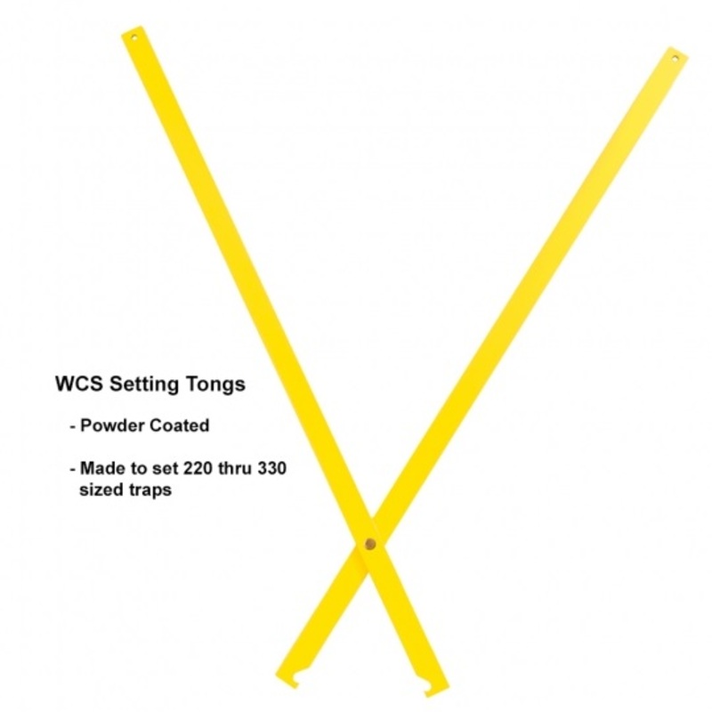 Larger sized, scissor style,trap setter for easily setting bodygrip traps of all manufacturers from #220through #330. These trap setting tongs have been powder-coated yellow in color to prevent rusting and also give the tool high visibility to prevent loss