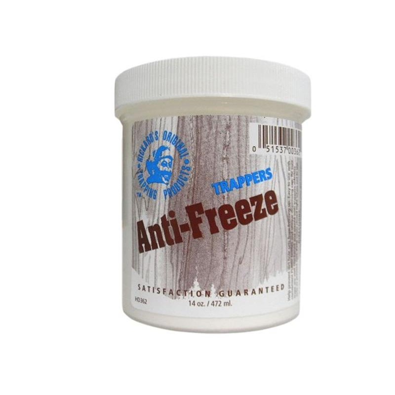 Pete Rickard's #362 Powder Trappers Anti-freeze 14 oz.Jar. Help prevent dirt hole sets from freezing up. Easy to use with convenient Plastic bottles and unique dispensing cap. Be sure traps are well blackened and waxed with trappers odorless wax to prevent