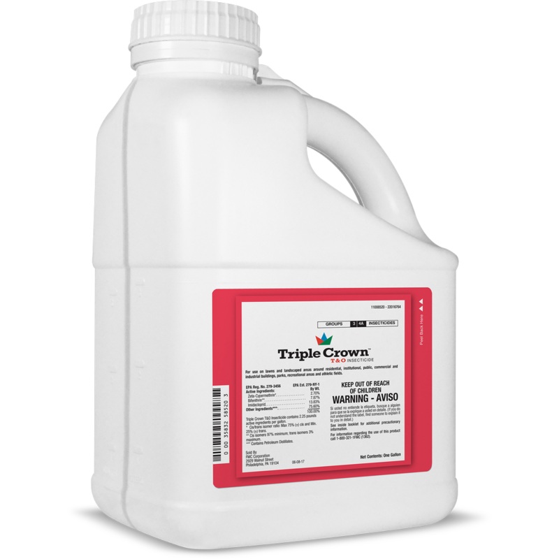 Triple Crown insecticide features a triple - action formulation for fast-acting, long-lasting, broad-spectrum control of above and below ground pests. With an advanced suspoemulsion formula that combines the trusted performance of bifenthrin and imidaclopr