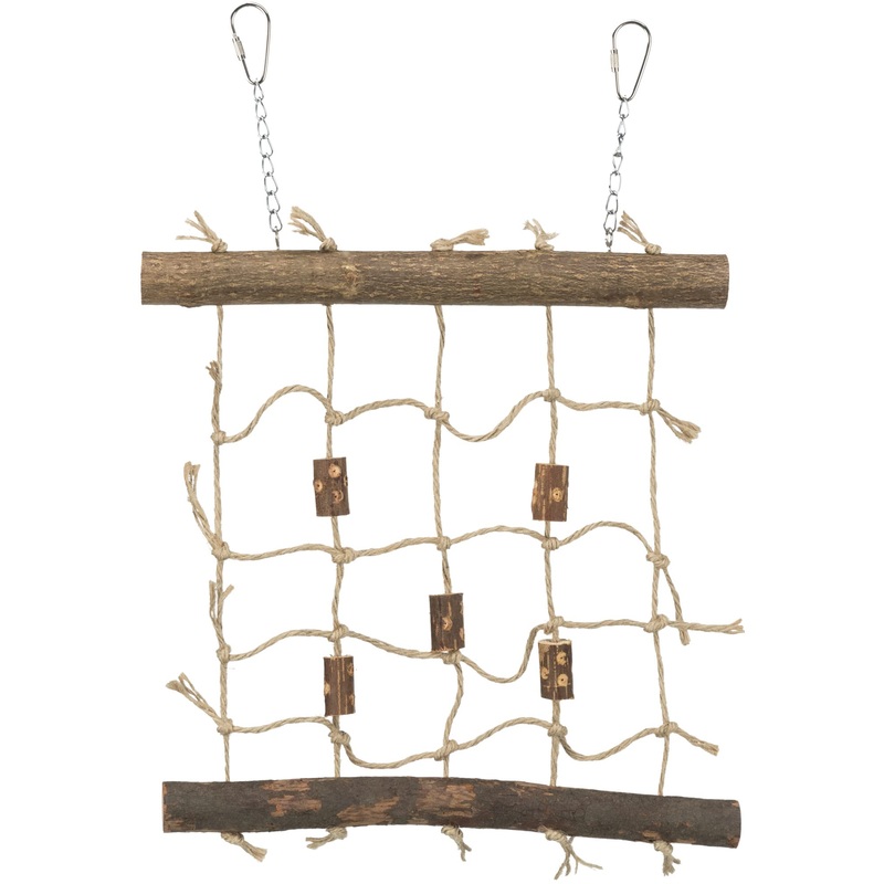 The frame and partition walls on the net are made of wood for a healthy bird beak.Great way for their birds to move in the cage.With a sisal network to preserve the claws.The best suited for smaller birds such as budgies.Natural Living Seil climbing wall c