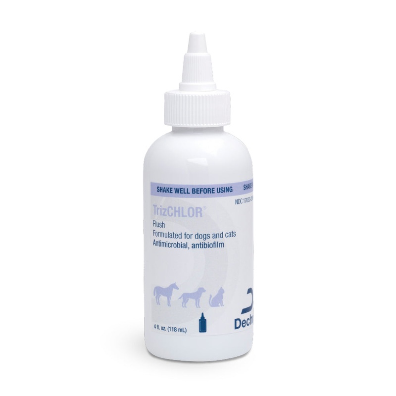 TrizCHLOR Flush for Dogs and CatsTrizCHLOR Flush is a multicleanse ear flush for dogs and cats. It is very effective at removing foreign particles from the ear and also aids in the treatment of bacterial infections, infected wounds, and lesions. TrizCHLOR