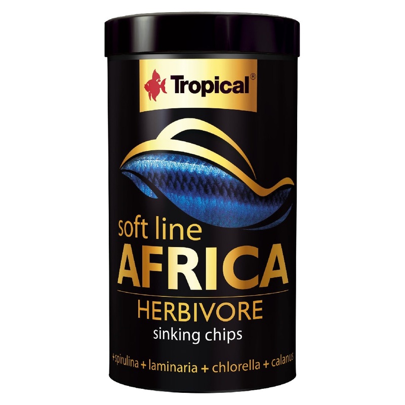 AFRICA HERBIVORE comes in the form of sinking chips for herbivorous and omnivorous African fish. It contains algae (Spirulina platensis 20%, Laminaria digitata 4.1%, Chlorella vulgaris 2.8%, Lithothamnium calcareum 1.2%), which are the source of protein, m