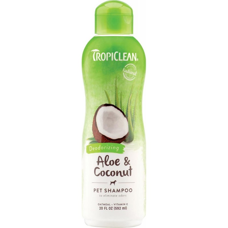 Deodorizes with natural ingredients TROPICLEAN ALOE & COCONUT PET SHAMPOO for a coat that looks and smells lovely TropiClean Aloe & Coconut Pet Shampoo takes your pet from smelly to snuggly in a snap. Protein and aloe vera replenish the natural moisture ba