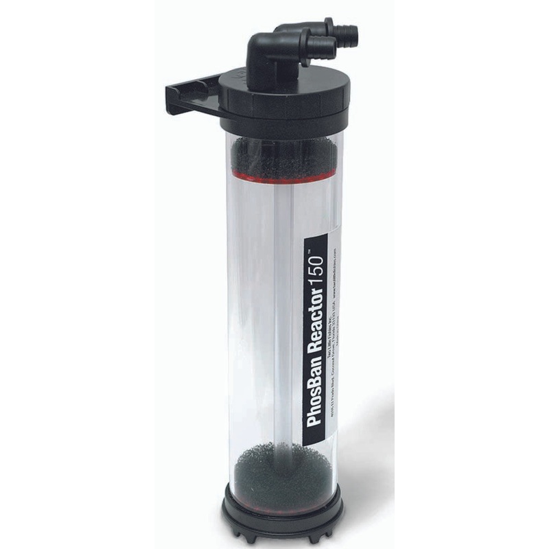 The PhosBan Reactor 150 is designed with the upflow principle to achieve the most efficient use of PhosBan or other chemical filter media. By pushing water from the bottom upward through a dispersion plate, it forces an even distribution of water through the media, and prevents channeling. It can be mounted hanging on the back of the aquarium or below the aquarium. Includes ball valve for regulating flow, and flexible connection fittings that rotate 180 degrees to allow a perfect custom fit to your installation. The threaded lid design makes servicing quick and easy. One reactor for aquariums up to 150 gallons for PhosBan and Activated carbon, or up to 100 gallons for use with biopellets.