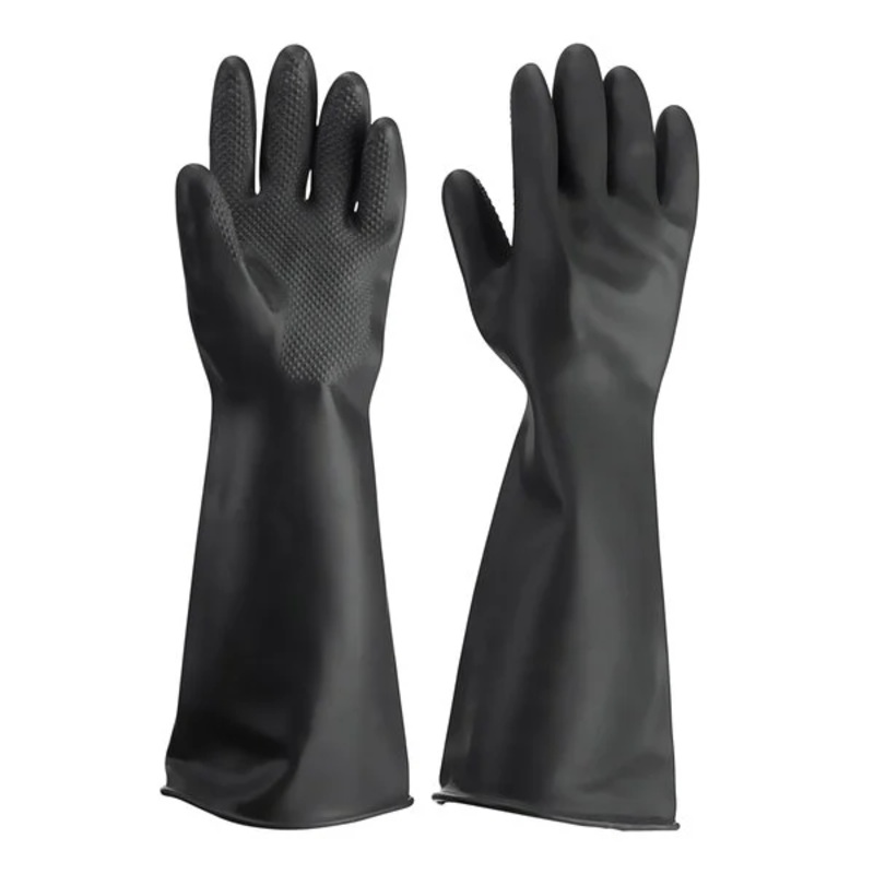 Black rubber gloves.More Information Package Size: Pair Manufacturer: Aabaco Environmental Manufacturer SKU: 008-55-XL ID: 127650